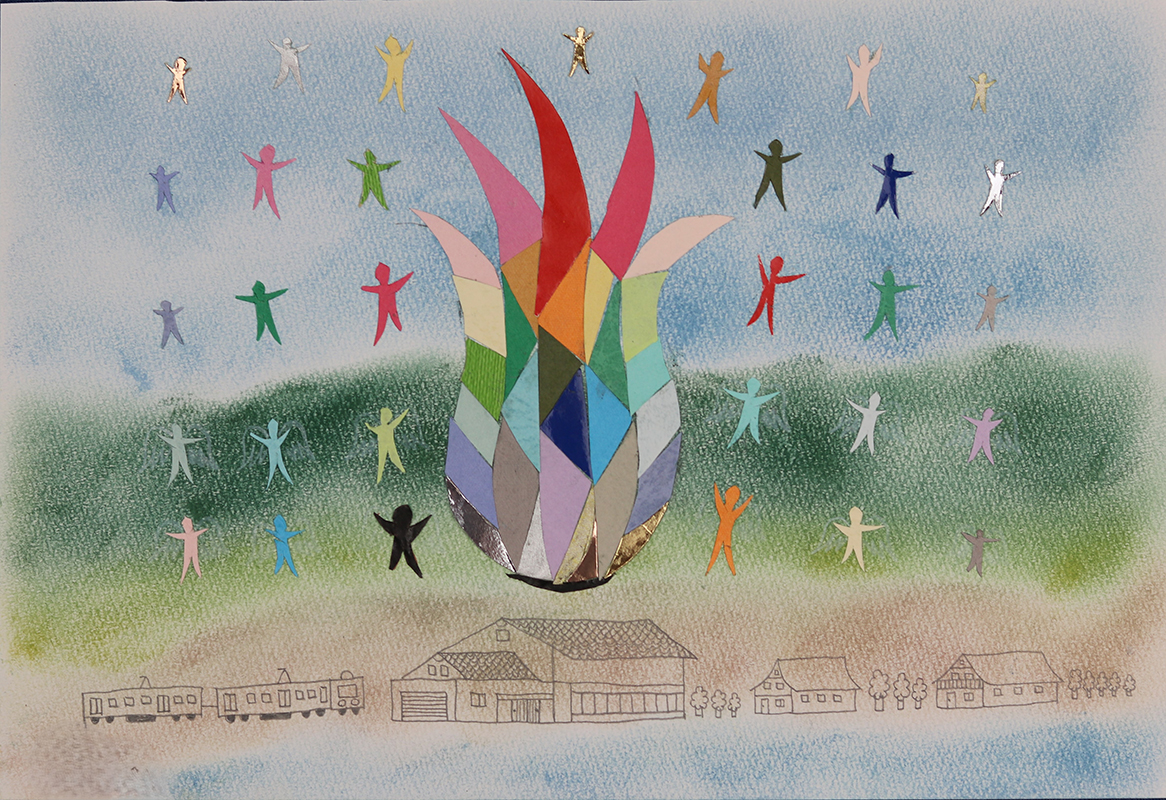 集まったアート作品をプロジェクトを協働する展示場所で展示、地域社会と交流します。